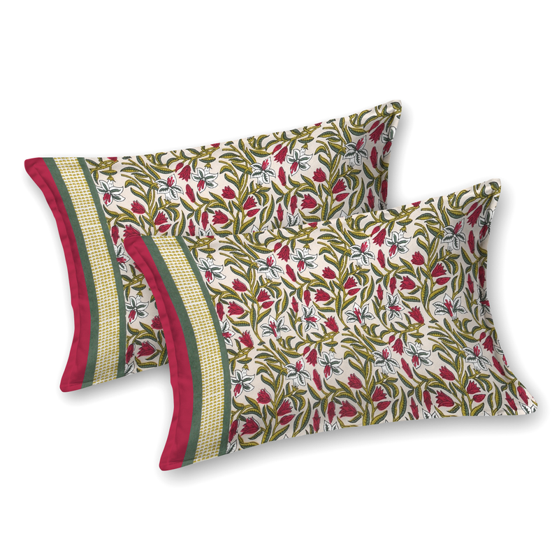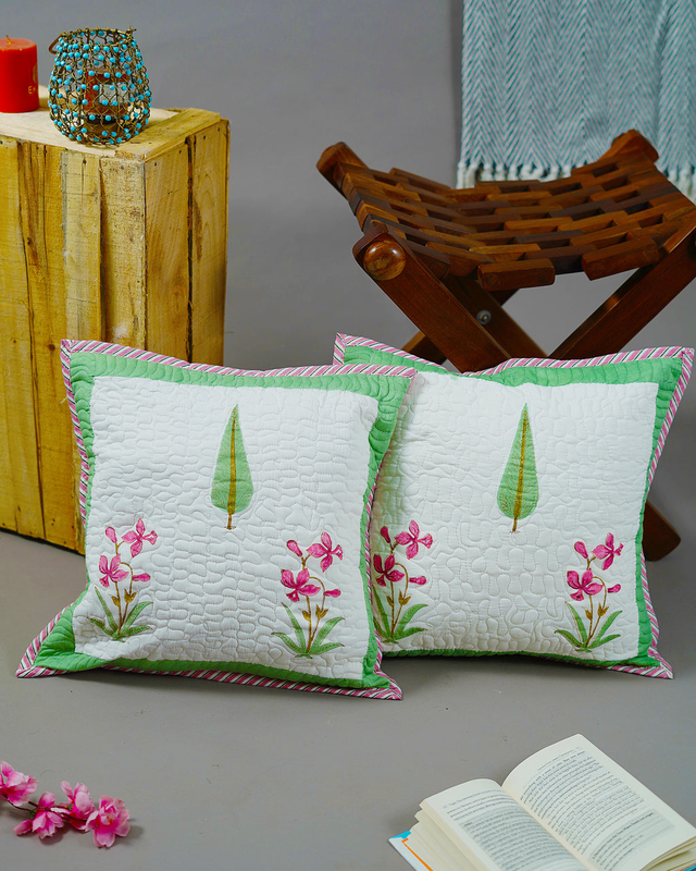 A PAIR OF HAND BLOCK PRINTED CUSHION COVER SIZE 16 by 16 INCHES