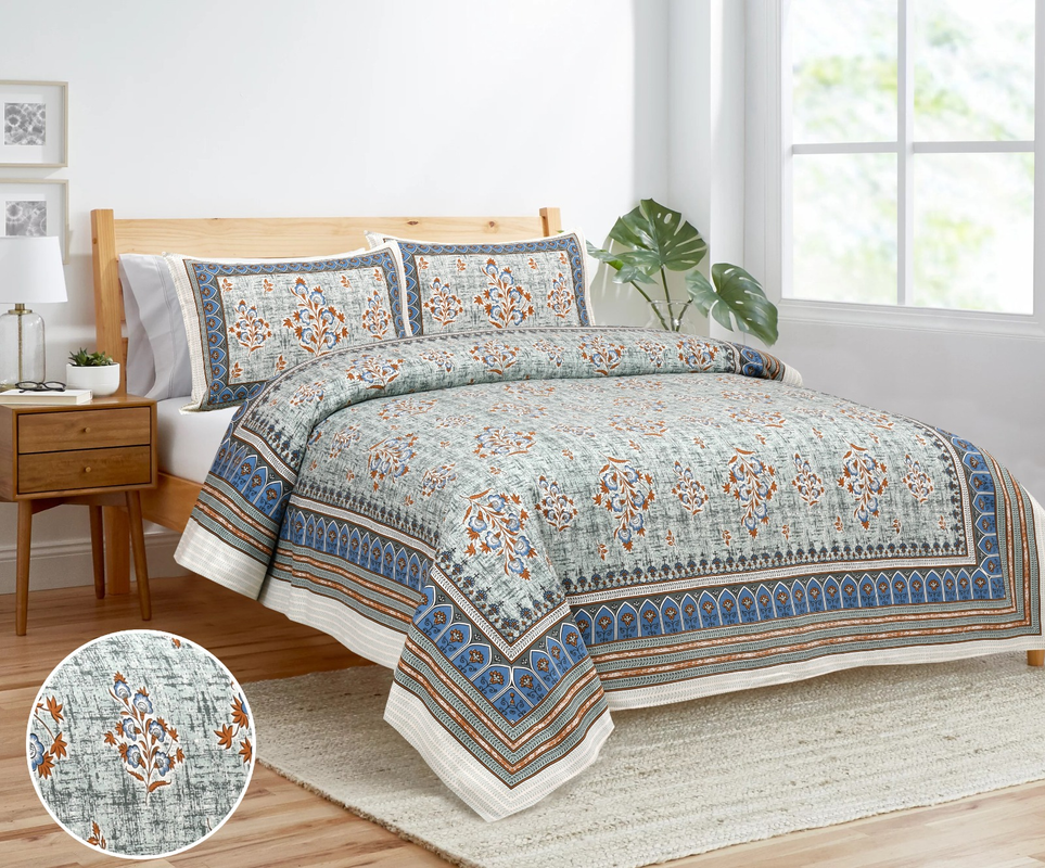 King Size Cotton Bedsheet. 90×108 inch approx. 1 Bedsheet 2 Pillow Covers.