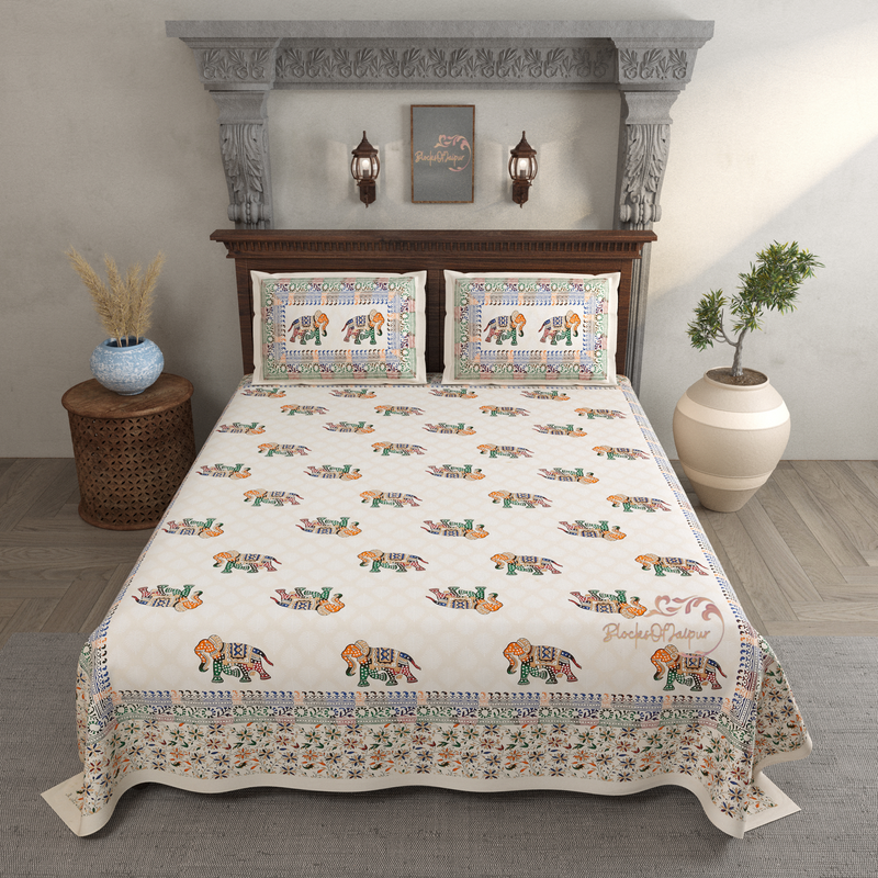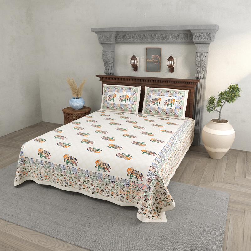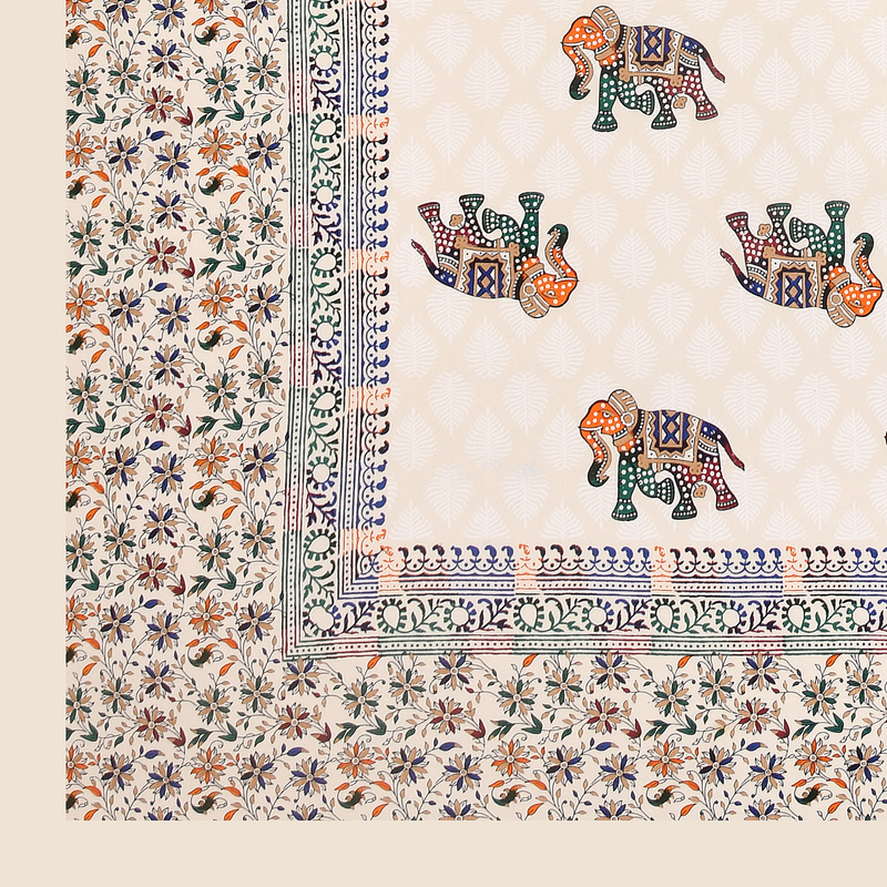 Jaipuri Block printed bed sheets is the most popular form in India of Flatbed sheet or sofa cover table cover make a light blanket, throw or bedspread.