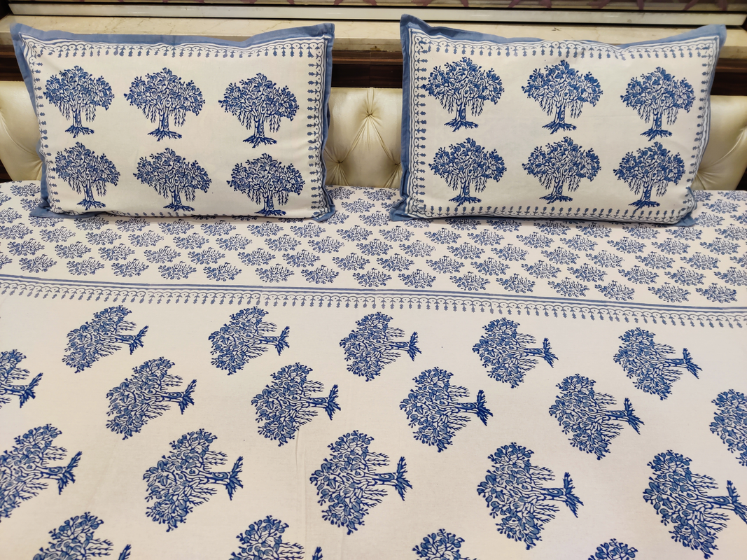 This pure cotton double bed sheet is made with traditional Rapid hand block printing process in Rajasthan. This double bed bedsheet with two pillow covers, is made of high quality cotton fabric. This is suitable for king size and queen size bed even with bigger mattress due to their large size of 90 x 108 inches. This bedsheet can be washed in machine or by hand and has very fast color. The fabric is of very high quality cotton and colors doesn’t fade even after multiple washes. This bed sheet is hand made with Rapid Sanganeri Block printing process, which is perfect natural design . These bed sheets will make your room decor beautiful. It is easily washable at home and gets vibrant with every wash. Jaipur Dohar specializes in home decor with hand block printed Dohar, bedsheets and quilts. Give your room a traditional vibrant look with heritage bedsheets from Jaipur Dohar.